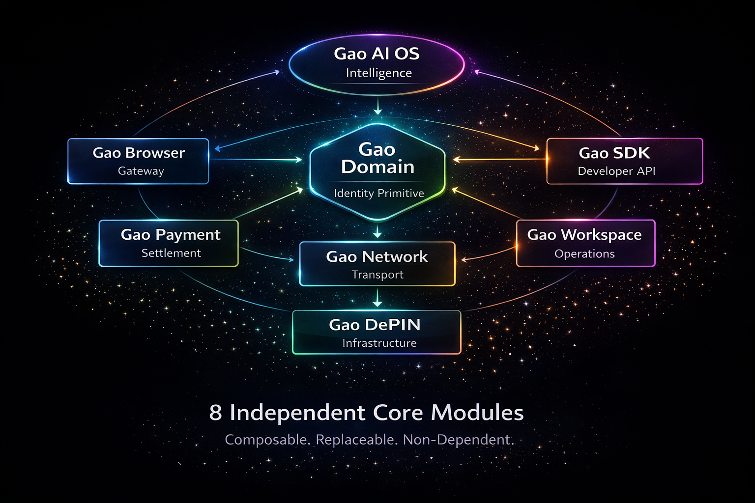 Gao Internet is an Internet-native operating layer where identity, apps, and infrastructure are designed to be: