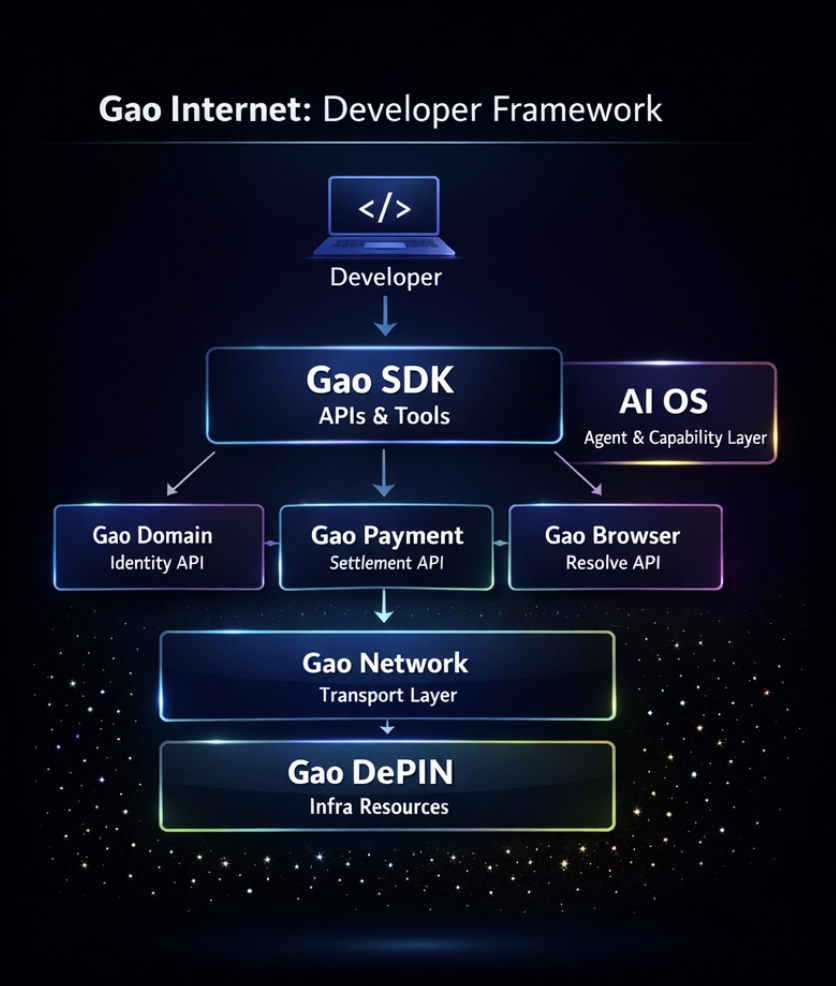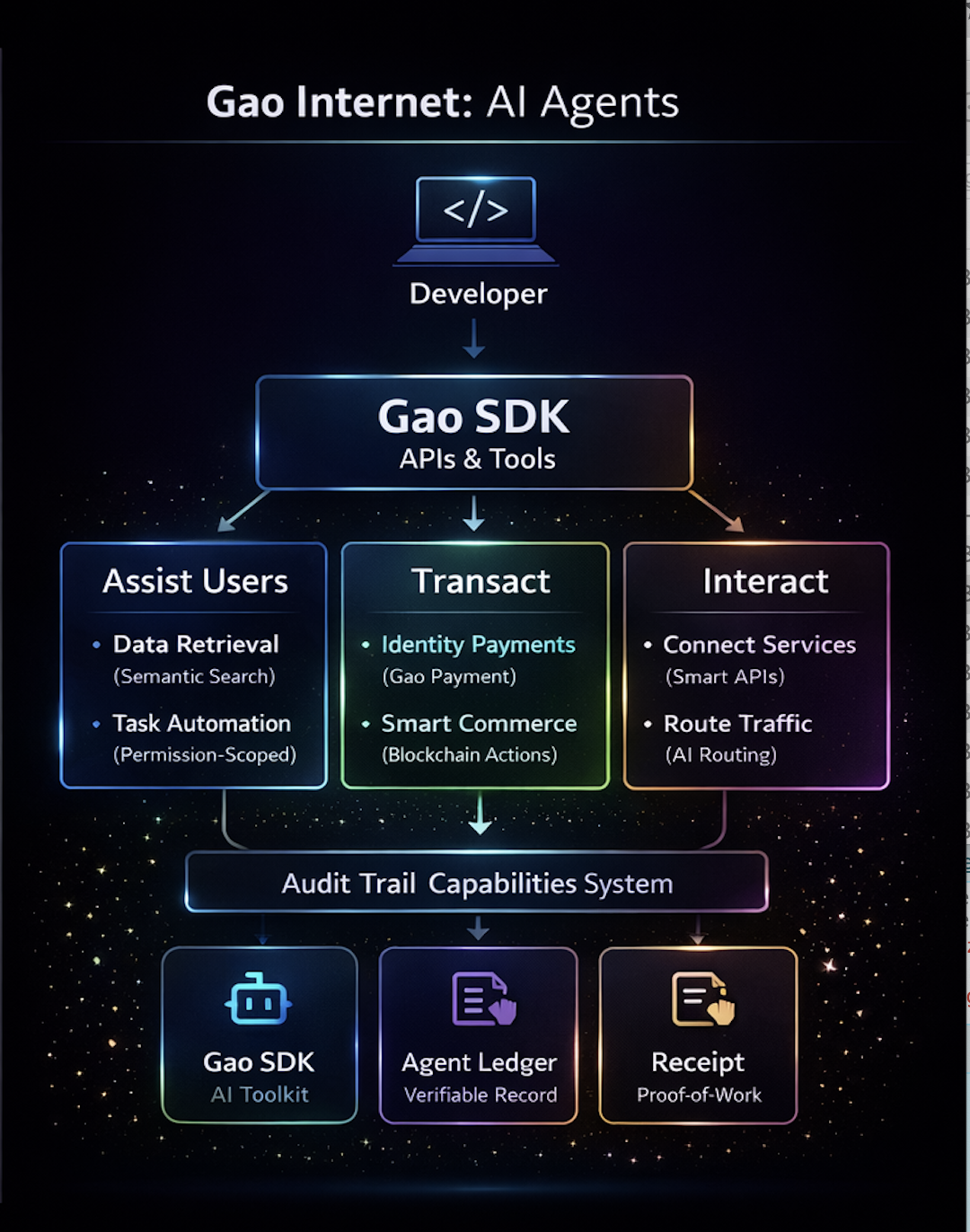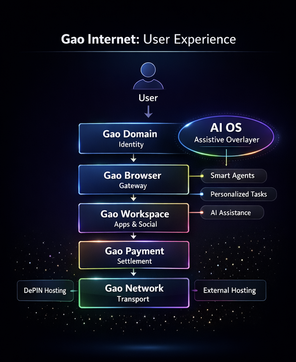 Gao Internet is an open, user-owned internet stack for Web2, Web3 and AI- where users control platforms and infrastructure belongs to everyone. Not a platform. The next internet layer.